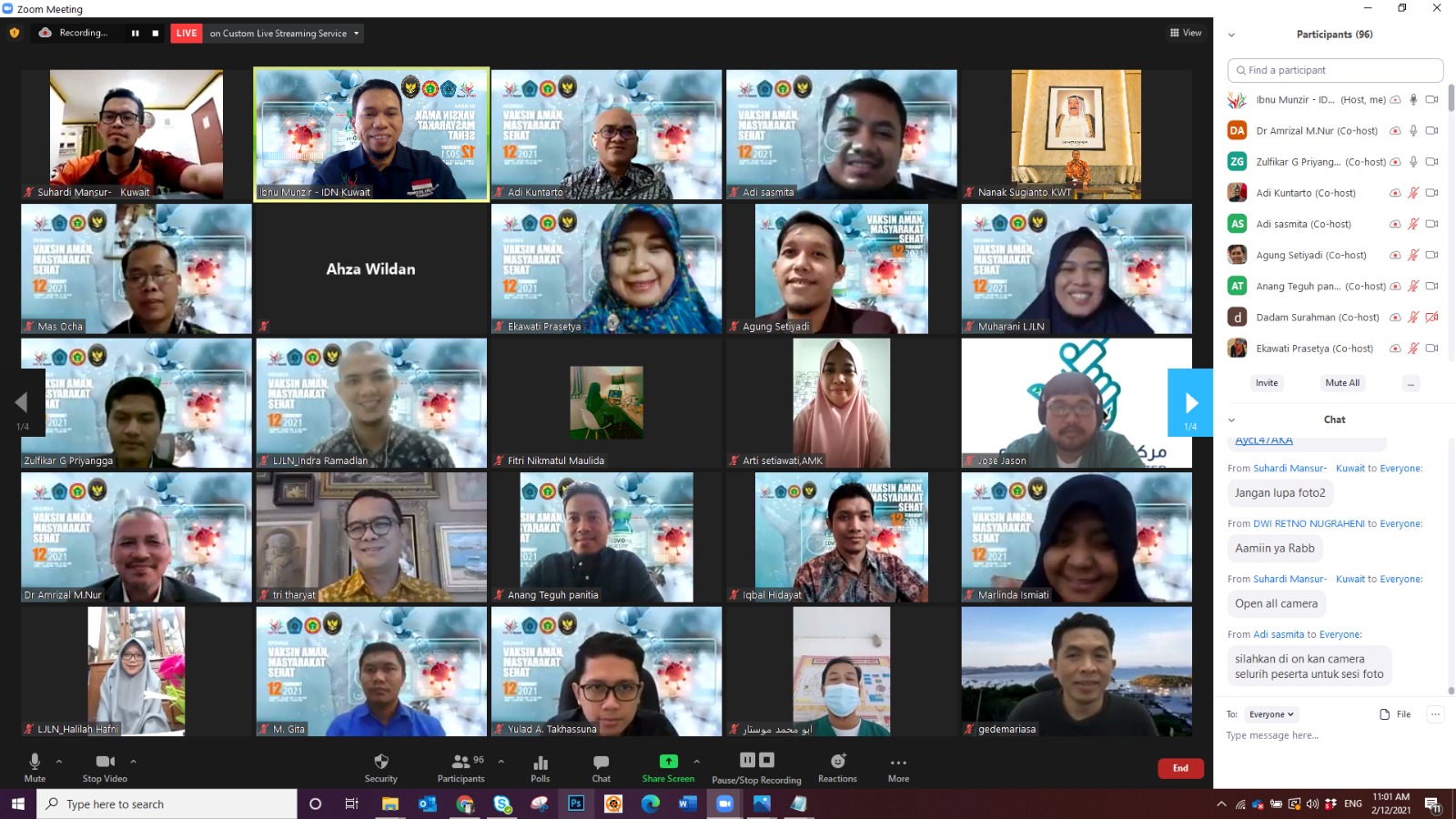 Kuwait. Jumat, 12 Februari 2021 pukul 09.00 waktu Kuwait Forum Diaspora Indonesia Kuwait (FDIK) dan Dewan Pimpinan Luar Negeri Persatuan Perawat Nasional Indonesia (DPLN PPNI) Perwakilan Kuwait bersinergi dengan Kedutaan Besar Republik Indonesia (KBRI) di Kuwait mengadakan seminar secara virtual (webinar) bersama dengan masyarakat Indonesia yang ada di Kuwait dan dimanapun berada untuk mengenali lebih jauh mengenai vaksin COVID-19.